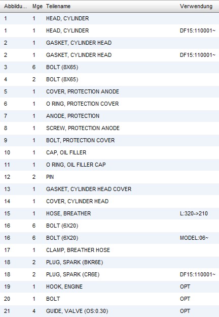 Motor,- Zylinderkopf Ersatzteile für Suzuki 15PS DF15 (11KW) 4Takt Außenborderbr />