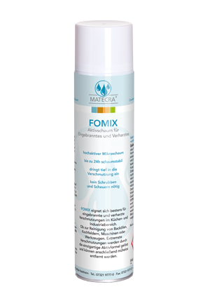 FOMIX eignet sich bestens für eingebrannte und verharzte Verschmutzungen im Küchen- und Industriebereich. Ob zur Reinigung von Backöfen, Kochfeldern, Maschinen oder Werkzeugen. Extremste Verschmutzungen werden durch die einzigartige Aktivformel gelöst und können anschließend mühelos entfernt werden.