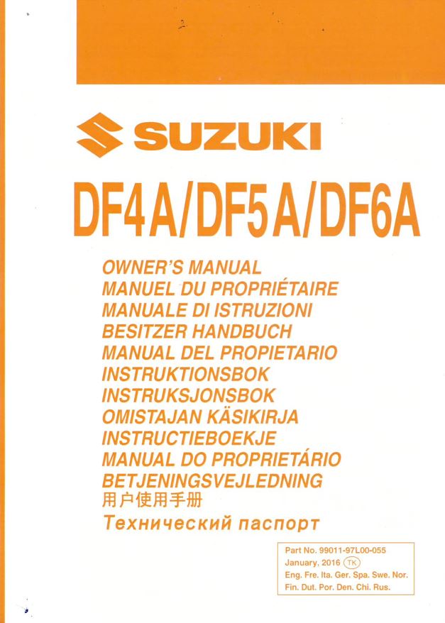 der Bedienungsanleitung und Servicehandbuch für 4/5/6PS Suzuki 4Takt Außenborder DF4, DF5, DF6 Kurz- & Langschaft