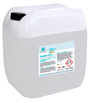 Shining Total eignet sich für alle Arten von Metallen wie Edelstahl, Kupfer, Messing, Chrom, Aluminium, Bronze, etc. sowie für Fliesen, Keramik, Glaskeramik, Kunststoffe, Emaille und viele mehr. Es verleiht stark verunreinigten, korrodierten, angelaufenen oder verwitterten Oberflächen ihren ursprünglichen Glanz. Shining Total ist ebenfalls auch im Gastronomiebereich anwendbar, insbesondere im Theken-, Küchen oder Sanitärbereich.