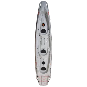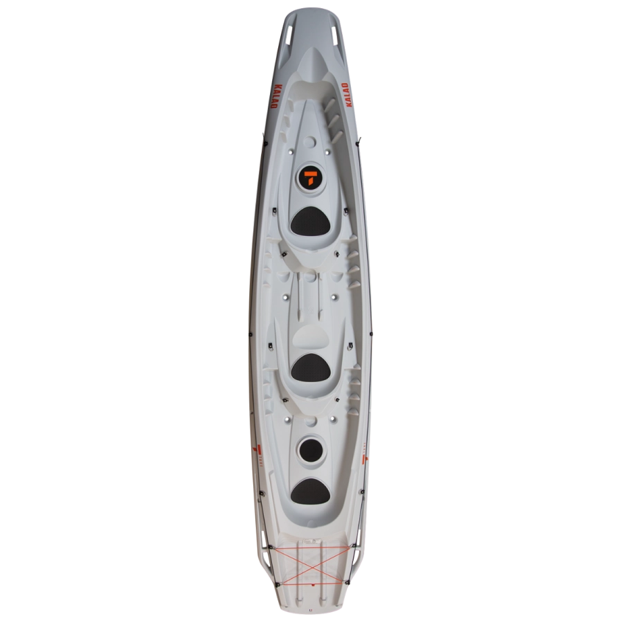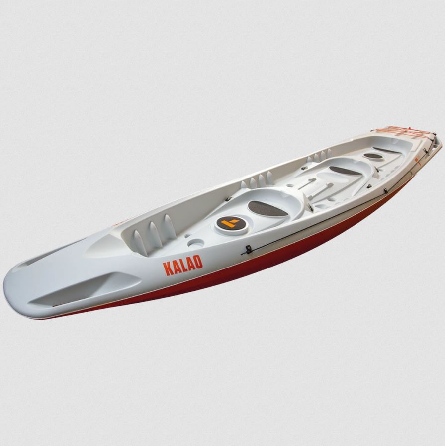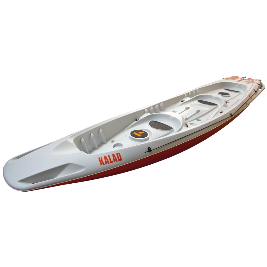Gleichermaßen einsetzbar auf dem Meer und auf Seen, für reine Vergnügungs- oder Angelausflüge – der Kalao steht für grenzenlose Abenteuer! Wie alle Kajaks in der BIC Sport Palette ist auch der Kalao mit vielen innovativen Details ausgestattet. Die fließende, stabile Rumpfform ermöglicht es der ganzen Familie (zwei Erwachsene und zwei Kinder) komfortabel und sicher in einem Kajak unterwegs zu sein. Der Kalao ist das erste 3-Personen Sit-on-Top Kajak auf dem Markt! 3 Erwachsene finden hier auf drei ergonomisch geformten Sitzen Platz. Im Wesentlichen verbindet der Kalao das Fassungsvermögen eines Old-Style Kanus mit der Sicherheit eines Sit-on-Top Kajaks! Eine weitere große Innovation: Der Kalao kann mit einem Elektromotor angetrieben werden. Der weitgehend flach gestaltete Rumpf mit sehr geringem Tiefgang ist extrem stabil, was es ermöglicht, den Kajak in vielseitigen Bedingungen einzusetzen. Aspekte wie einfaches Verstauen von Taschen und der einfache Transport des Kajaks wurden ebenfalls berücksichtigt. Ein weiterer wichtiger Punkt: Der Kalao ist unsinkbar!