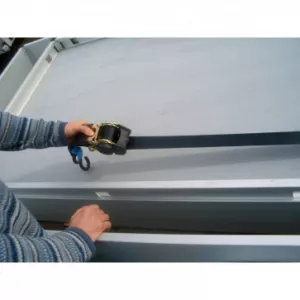 Automatischer Zurrgurt LC 750, U 1500 daN, 3,0 m Patentierter Druckratschenzurrgurt mit automatischer Aufrollung 1-teilig mit PVC-beschichteten S-Haken Bandbreite 50 mm, Fertiglänge ca. 3000 mm