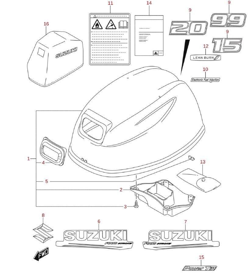 Backbord Suzuki linker Aufkleber Streifen weiß für Außenborder DF20 DF20A ab 2020