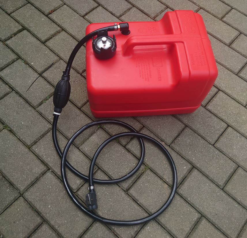 BenzintankSet passend für Suzuki 12Liter inklusive Tankanzeige und Kraftstoffleitung inkl. Pumpenball und Anschlüsse Festanschluss Tank Steckanschluss Motor 12L Outboard als Bausatz optional montiert
