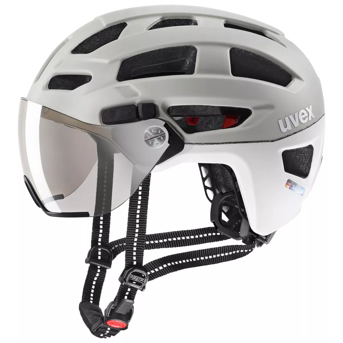 Er ist der erste Inmould-Helm, der mit einem integrierten Visier ausgestattet ist. Das Allwetter-Visier in litemirror silver (Schutzstufe 1) schützt die Augen im Straßenverkehr optimal vor Sonne und Wind. Egal ob bei Tag oder in der Nacht: Der uvex finale visor kann locker über der Korrekturbrille getragen werden. Zudem ersetzt das Visier mühelos die Sonnenbrille und erweitert das Sichtfeld. Pluspunkt: Selbst durch tränende Augen verschmierte Mascara ist damit passé. Für einen höheren Sonnenschutz kann das Visier gegen ein dunkleres in Schutzstufe 3 getauscht werden.