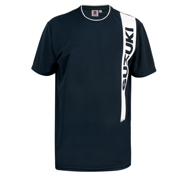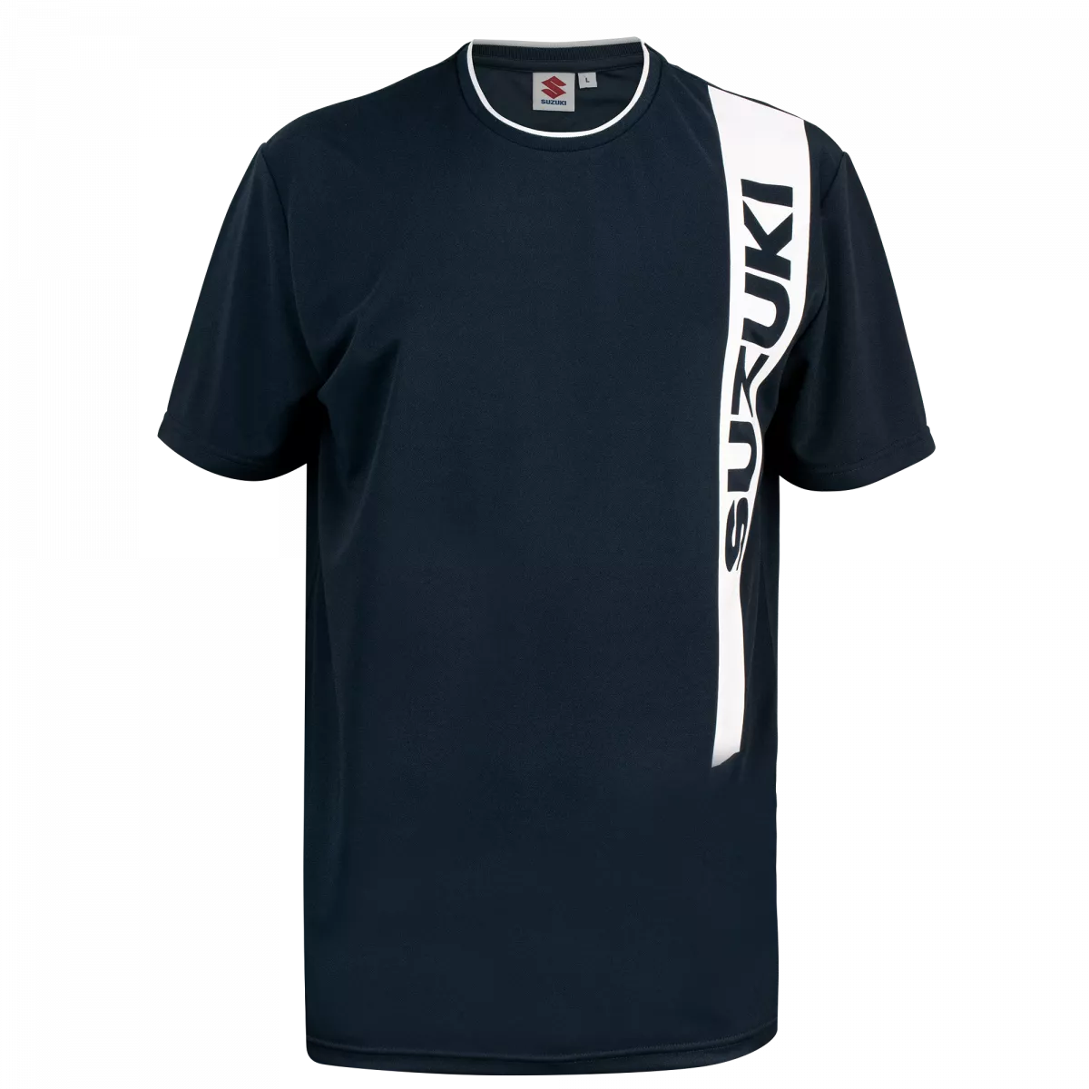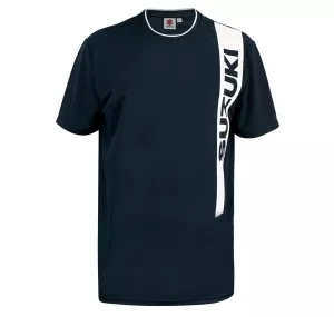 T-Shirt, blau Blaues sportliches TShirt, atmungs aktiv, mit weißem gedrucktem Streifen und SUZUKI Schriftzug, 100 % Polyester