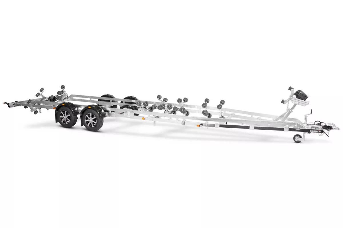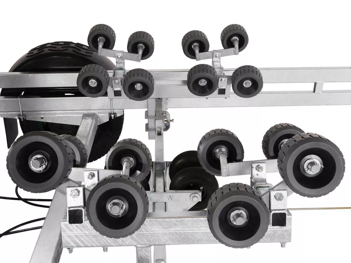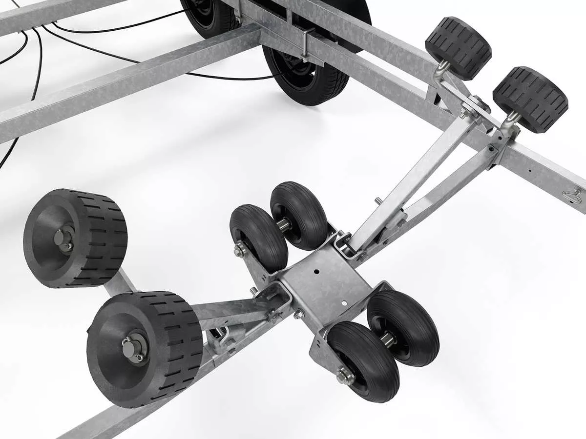 Unser gebremster Tandem-Anhänger für Boote bis 30" ist mit einem V-förmig geschweißten und verstärkten Chassis ausgestattet. Dies bietet Dir ein ausgezeichnetes Fahrverhalten. Das feuerverzinkte Chassis gewährt Deinem Boot eine lange Lebensdauer. Die elektrischen Leitungen sind im Inneren Deines Fahrgestell geschützt verlegt. Die wasserdichten Radlager mit rostfreien Bremsseilen aus Edelstahl sorgen für eine lange Lebensdauer. Zusätzlichen Schutz bieten die geschlossenen und begehbaren Kotflügel. Die geschlossene Winde schützt vor Schmutz und Witterung. Der Windenstand ist leicht verstellbar und mit einer extra Sicherungskette ausgestattet. Die ausziehbare Lichtleiste wird mit Schnellverschlüssen arretiert und erleichtert den schnellen An- und Abbau. Die gezeigten Bilder dienen nur zur Illustration und können vom Original abweichen oder optionales Zubehör enthalten.
