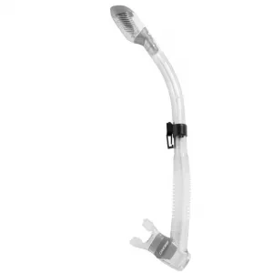 Am oberen Ende des Schnorchels Dry befindet sich ein innovativer Spritzwasserschutz, der das Eintreten von Wasser bei Verwendung an der Wasseroberfläche weitestgehend verhindert. Das untere Ende ist mit einem Faltenschlauch mit glatter Innenseite versehen, der den Schnorchel bei der Verwendung mit dem Atemgerät vom Mund fern hält. Dank eines speziellen Wassersammelbehälters mit großem, elliptischem Ventil kann das Wasser einfach und schnell entleert werden.