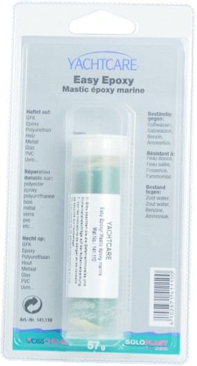 Zweikomponenten-Reparatur-System in einem Strang, welches durch einfaches Kneten in der Hand aktiviert wird. Geeignet für die Abdichtung von Lecks und Rissen an Bord innerhalb kürzester Zeit. Auch für den Einsatz unter Wasser geeignet. YC EASY EPOXY schrumpft und vergilbt nicht.