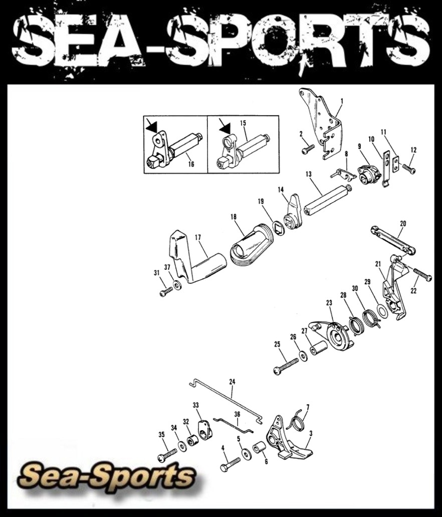 Ersatzteile für Mercury Mariner 15PS (11KW) 2Takt Außenborder , Getriebe-, Unterwasserteil-, Ersatzteile, Seriennr. 9542620-9792199 Teil B