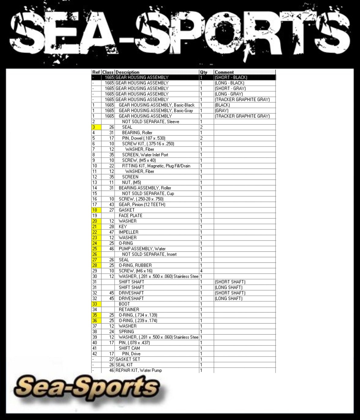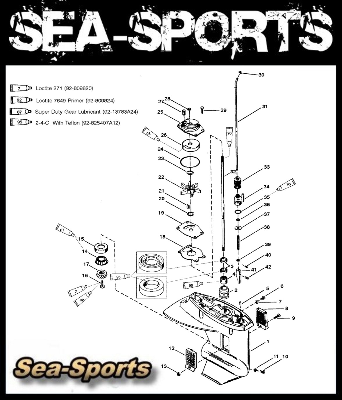 Ersatzteile für Mercury Mariner 15PS 11KW 2Takt Außenborder Getriebe Unterwasserteil Ersatzteile Seriennr. 9927000-0P016999 Teil B