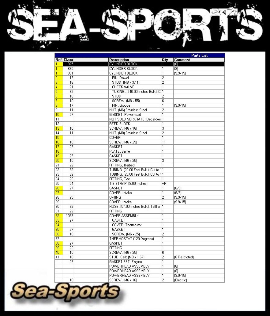 Ersatzteile für Mercury Mariner 15PS (11KW) 2Takt Außenborder , Motor-, Zylinderblock-, Ersatzteile, Seriennr. 0P0170000-325499 Cylinder Blocks Cover