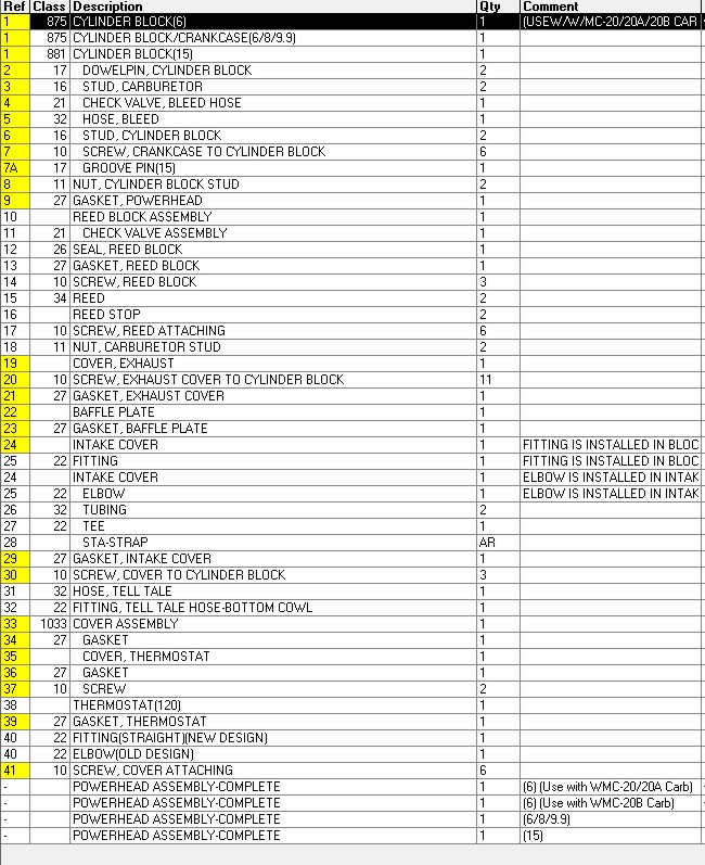Ersatzteile für Mercury Mariner 15PS (11KW) 2Takt Außenborder , Motor-, Zylinderblock-, Ersatzteile, Seriennr. 9542620-9792199