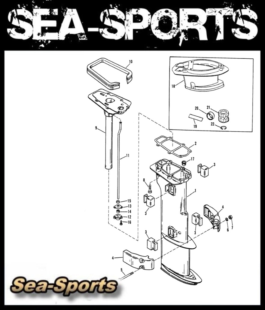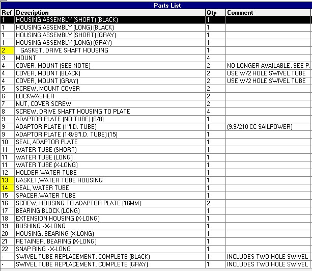 Ersatzteile für Mercury Mariner 15PS (11KW) 2Takt Außenborder , Schaft-, Unterwasserteil-, Ersatzteile, Seriennr. 9542620-9792199