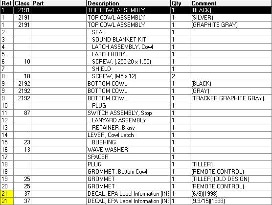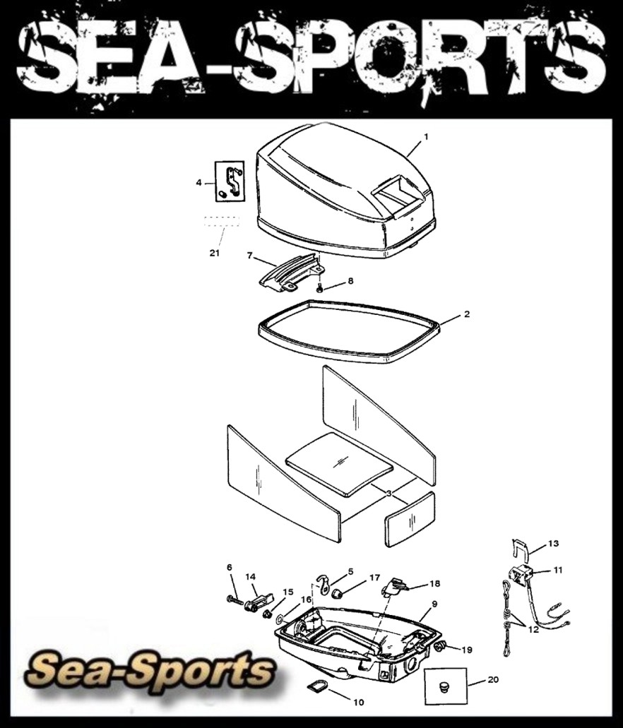 Ersatzteile für Mercury Mariner 9,9PS 2Takt Außenborder , Außenteile-, Gehäuse-, Ersatzteile, Seriennr. 9792200-0P016999