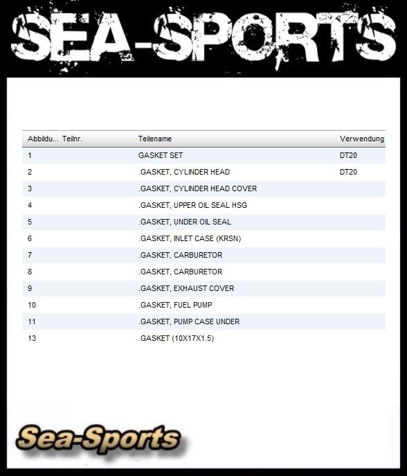 Ersatzteile für Suzuki 20PS (14,7KW) 2Takt Außenborder , Motor-, Dichtungssatz-, Ersatzteile, DT20
