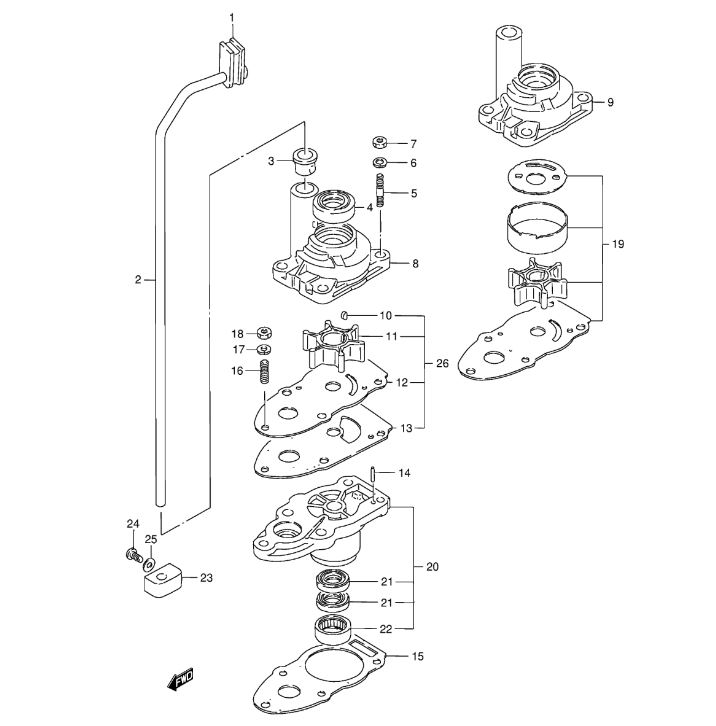 Platte Suzuki Kühlwasserpumpe passend bei Suzuki bei DF4 DF5 DF6 DT2