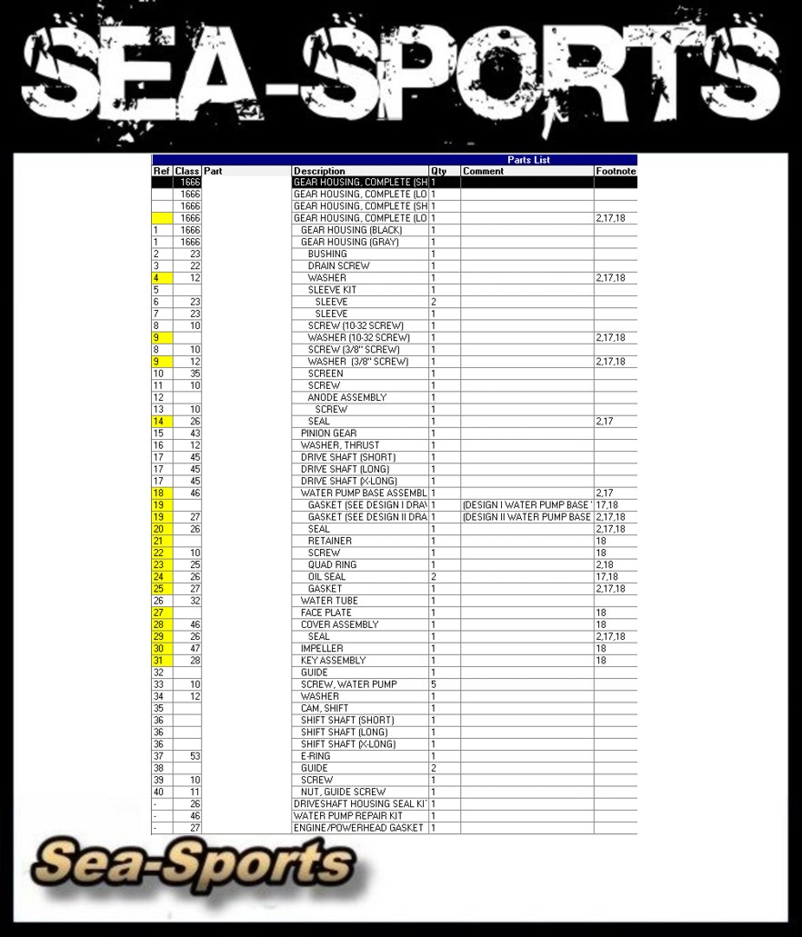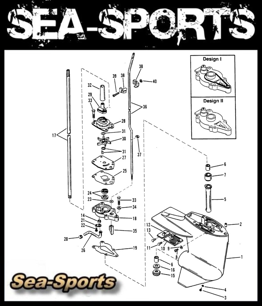 Ersatzteile für Mercury Mariner 15PS (11KW) 2Takt Außenborder , Getriebe-, Unterwasserteil-, Ersatzteile, Seriennr. 9542620-9792199 Teil B