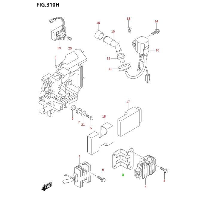 Halterung für Kühlrippe DF25A DF30A Suzuki Elektrik Originalteile Ersatzteil altern. 32815-94L00-0000