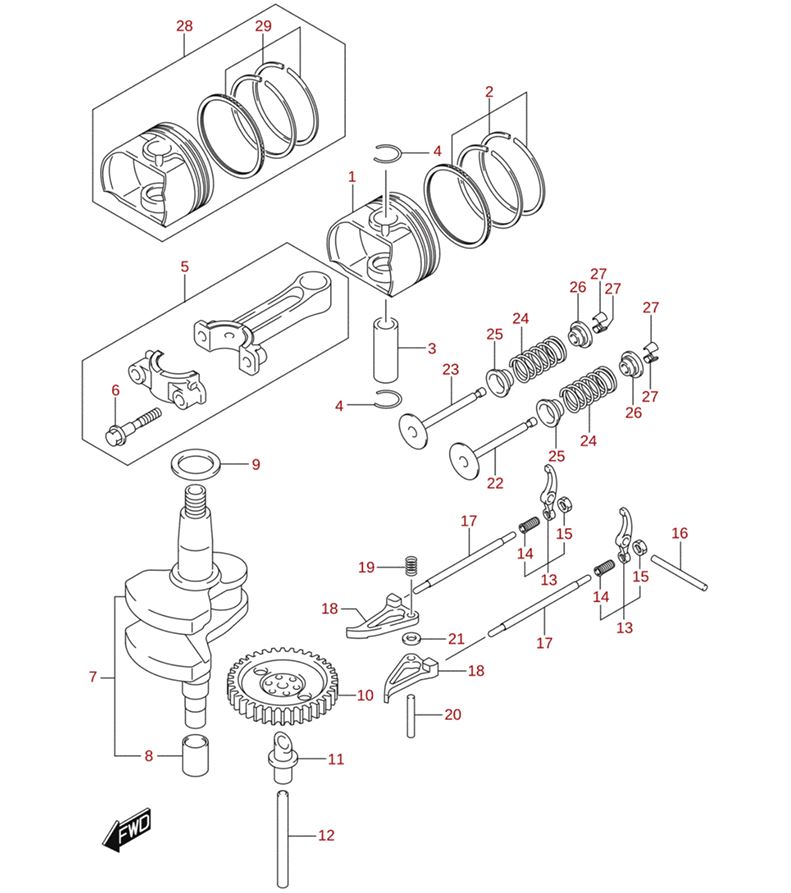 Ersatzteilliste für Suzuki 2,5PS 4Takt Motor Kurbelwelle Ersatzteileliste