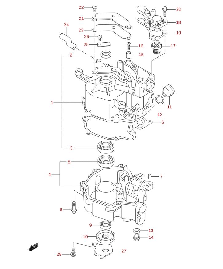 Ersatzteile für Suzuki 2,5PS 4Takt, Getriebe-, Antriebswellengehäuse, Ersatzteile