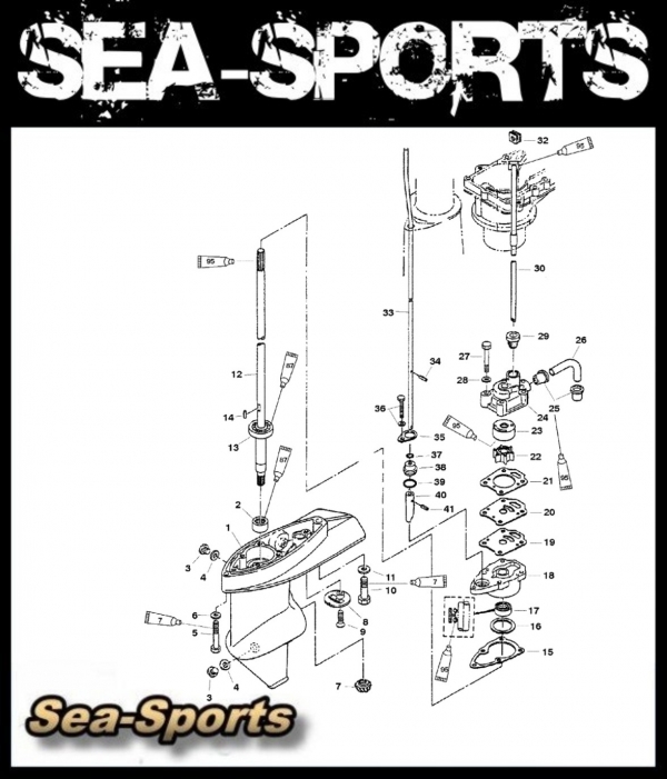 Key Mercury Mariner 3,3PS 4PS 2Takt Getriebe Motor Unterwasserteil Wasserpumpe Ersatzteile