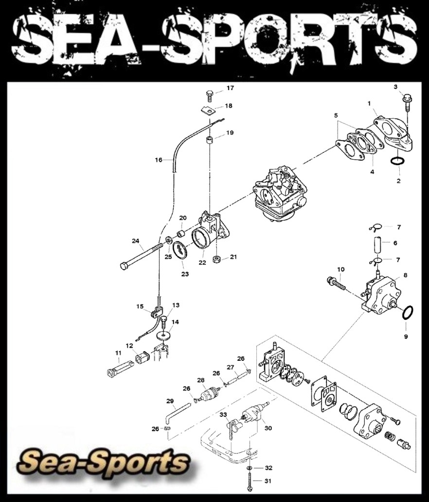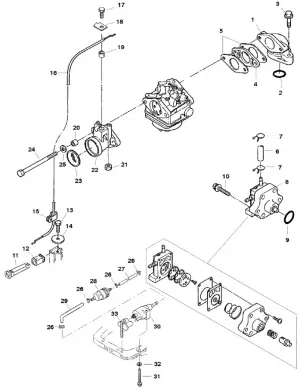 Mercury Mariner 4-6PS 4Takt, Motorteile-, Vergaser,- Ansaugkrümmer,- Benzin- Fuelsystem, Ersatzteile Außenborder