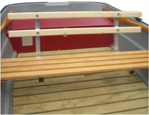 Die leicht zu montierende Rückenlehne aus Holz und Aluminium eignet sich natürlich auch für andere Ruderboote mit entsprechenden Abmessungen.