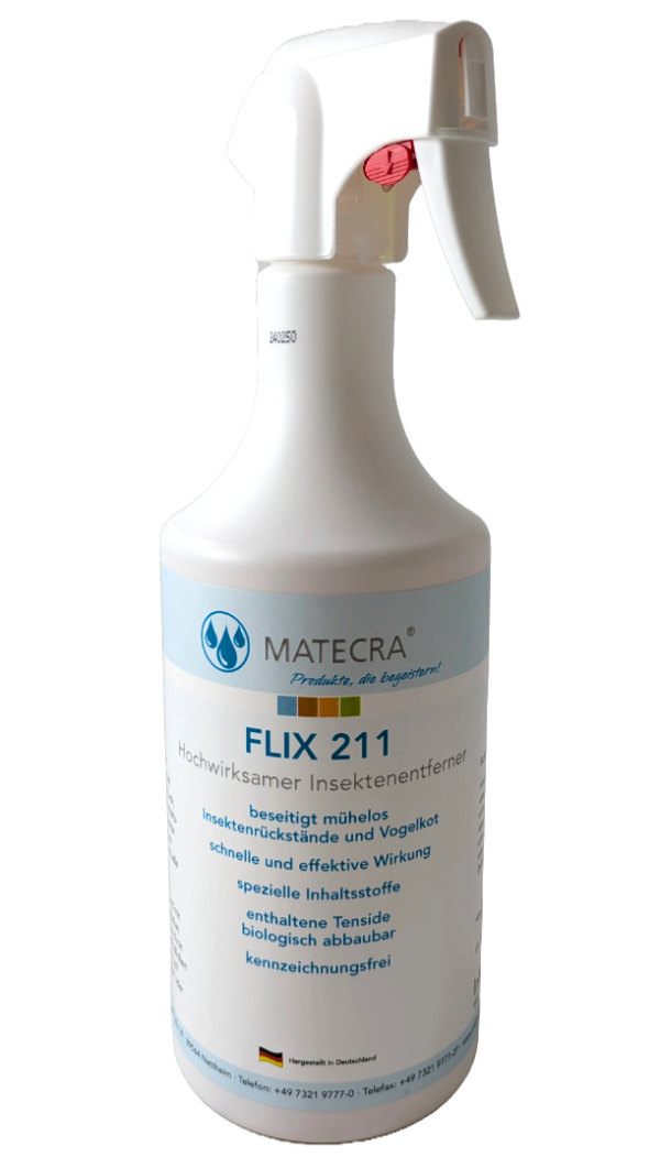 FLIX 211 wurde speziell für die Anforderungen im KFZ-Bereich entwickelt. Seine leistungsstarke Formel löst hartnäckige Insektenrückstände effektiv, ohne Lack, Kunststoff oder Glas anzugreifen. Dank spezieller Inhaltsstoffe wirkt er schnell und erleichtert die anschließende Fahrzeugwäsche erheblich.