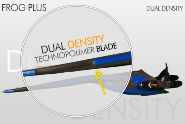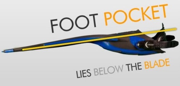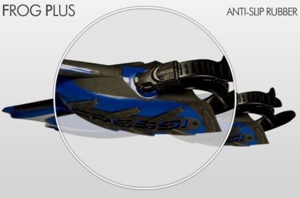 Das Fußteil befindet sich unterhalb des Flossenblattes, ein System, das von Cressi inzwischen bei allen Flossenmodellen verwendet wird, um eine größere und homogenere Flossenblattfläche zu erhalten. Das aus weichen Elastomeren bestehende Fußteil zeichnet sich durch einen außerordentlichen Komfort aus und ermöglicht ein einfaches An- und Ausziehen der Flosse, auch im Wasser. Entlang des Flossenrandes ist ein Schutzprofil aus Elastomer angebracht; die Druckschnallen des Riemens sind mit einem Öffnungsschutz ausgestattet.