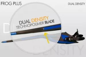 Das Flossenblatt besteht aus einem Materialmix, das einen flüssigen Flossenschlag ohne große Anstrengungen und mit geringem Muskelaufwand garantiert.