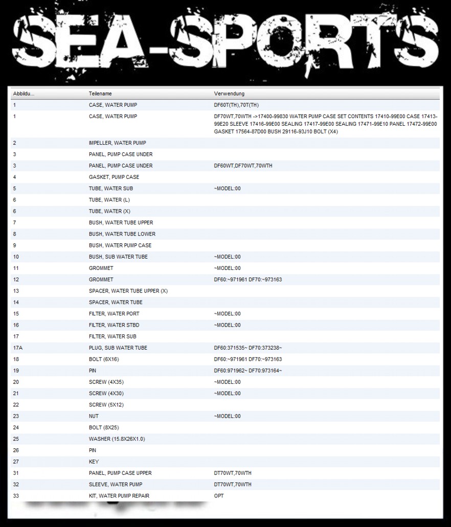 Flügelradset (Impellerset) Suzuki Kühlwasserpumpenset, passend bei Suzuki bei DF60 und DF70 1998-2007