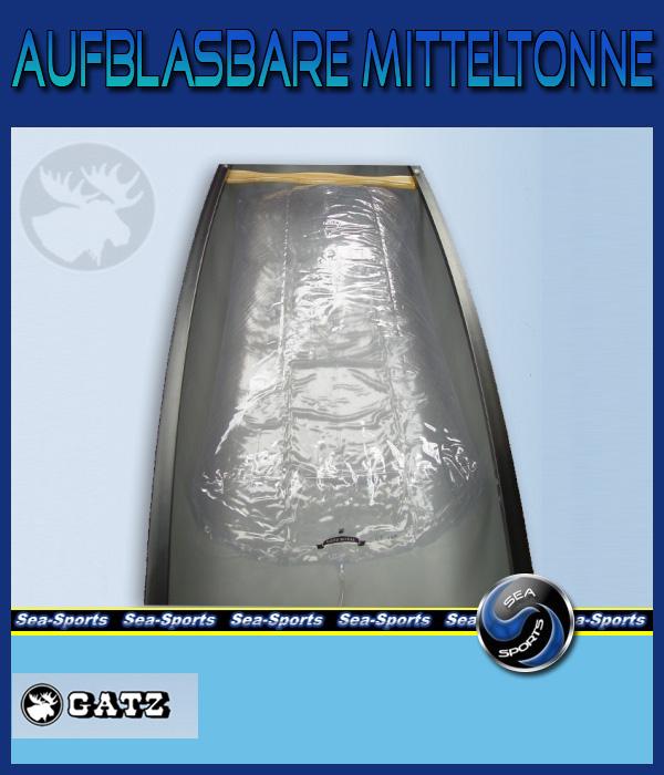Bootsformangepaßter aufblasbarer Auftriebskörper für die Bootsmitte. Gut geeignet für Gatz-Royal-Canadier. Die Mitteltonne bringt extrem viel zusätzlichen Auftrieb, ein Muss wenn es ins Wildwasser geht. Der Auftriebskörper kann entweder unter dem Trageholm oder mittels Leinen, die von Süllrand zu Süllrand gespannt werden, im Canadier fixiert werden.