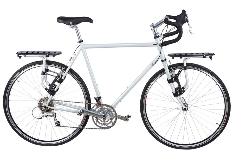 Patentierter Gepäckträger, der bei den meisten Fahrradtypen, vom Mountainbike mit Vollfederung bis hin zum Alltags- und Straßenrennrad, vorne oder hinten angebracht werden kann.