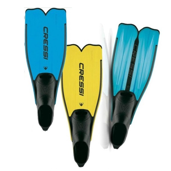 In dieser Flosse steckt die gesamte fünfzigjährige Erfahrung von Cressi, eine Weiterentwiclung der Grundprinzipien des berühmten Rondine-Modells aus blauem Gummi.