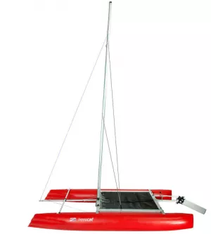 Die Krönung von 60 Jahren Katamaran -Evolution-. Durch jahrzehntelange Erfahrung, einem wissenschaftlichem hydrodynamischen Forschungsprojekt und 3-jährigen intensiven Versuchen ist es zum ersten Mal gelungen, aus einem zerlegbarem Luft-Segelkatamaran bisher unvorstellbare Leistungen herauszuholen.