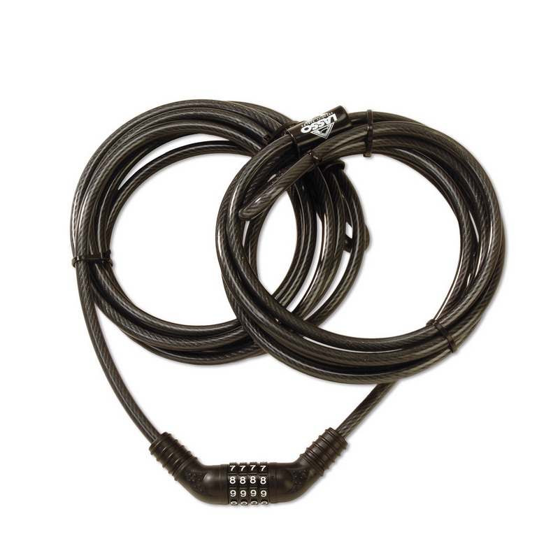 Lasso-Sicherheitskabel verfügen über ein benutzerfreundliches, integriertes Zahlenschloss, bei dem Sie einen beliebigen vierstelligen Code wählen können.