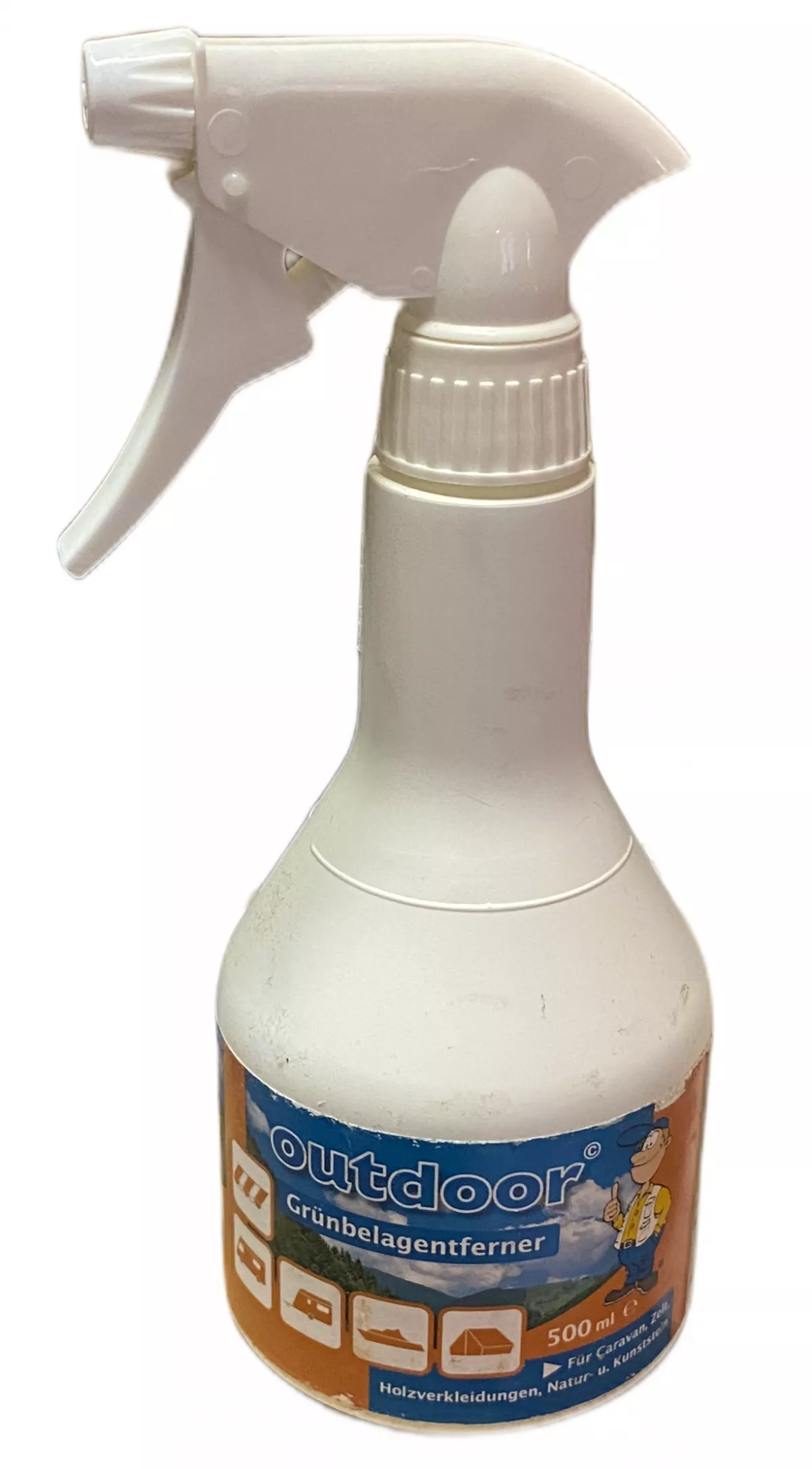 Zur schonenden und mühelosen Entfernung von Grünbelag auf Mauerwerk, Holzverkleidung, Natur- und Kunststein, Zelt, Caravan und Boot