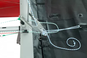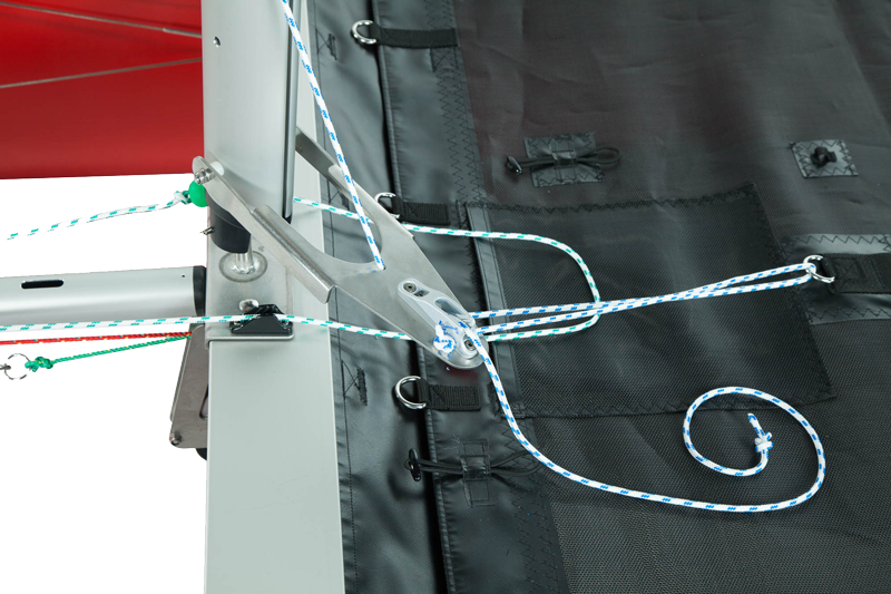 Per Traveller: Je nach Kurs wird der Holepunkt der Großschot mittels Traveller in Richtung Luv oder Lee verschoben. Ob halb, vor oder hart am Wind: Der „Twist“ im Großsegel wird verringert, die Leistung gesteigert.