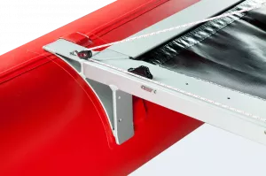 Zwei kräftige Streben versteifen die Rümpfe im Bugbereich. Konstante Festigkeit fast wie beim Hartschalenrumpf für noch mehr Geschwindigkeit und weniger Spritzwasser.