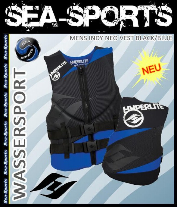 Hyperlite Herren Indy Neo Vest Schwimmweste Weste Schwarz Blau Gr XXL 2XL Restposten Einzelstück