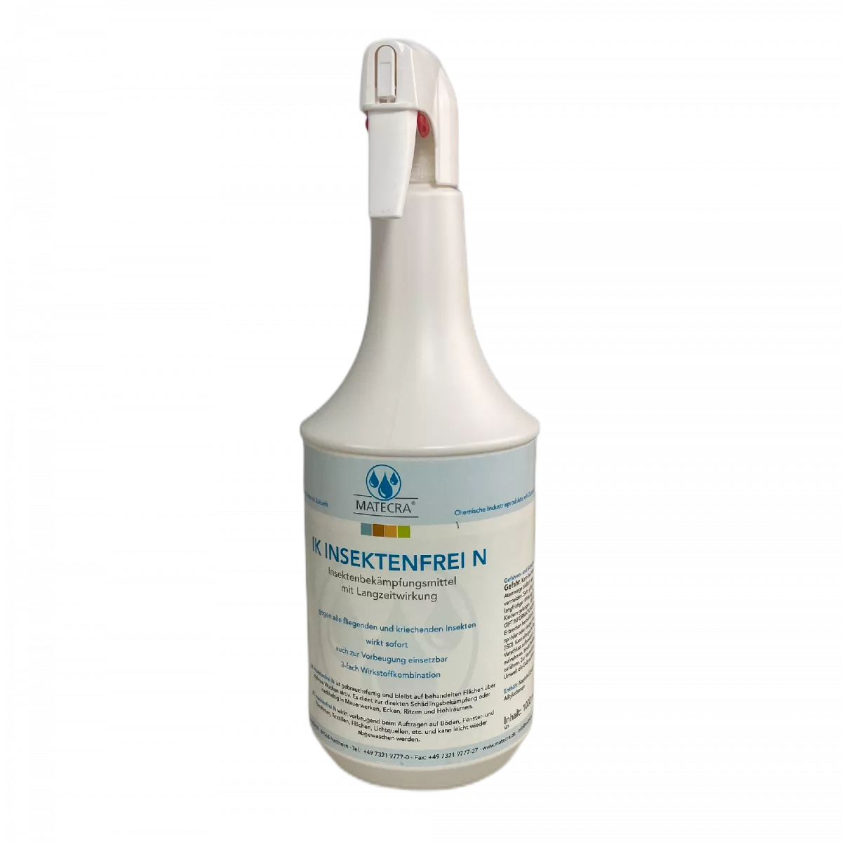 IK Insektenfrei N ist gebrauchsfertig und bleibt auf behandelten Flächen über mehrere Wochen aktiv. Es dient zur direkten Schädlingsbekämpfung oder nachhaltig in Mauerwerken, Ecken,