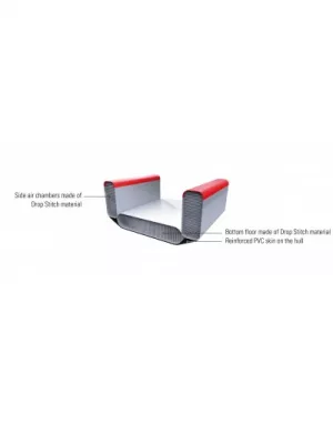 Seitenkammern und Boden sind sind aus dropstitch Material gefertigt mit Hochdruck aufblasbar, extrem haltbar, robust und abriebfest