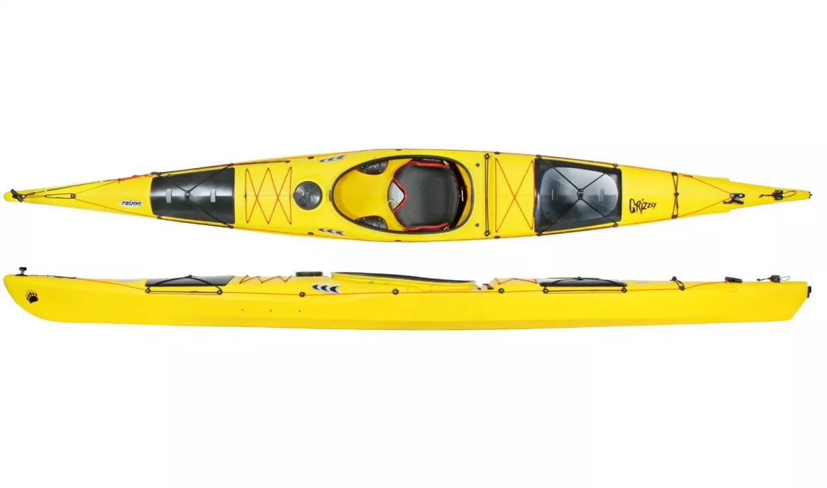 Der Grizzly ist spurtreu, schnell und wendig auf der Kante. Er verfügt über viel Platz, ein einmaliges Angebot in dieser Bootsklasse an Stauraum und eine sehr geräumige Sitzluke, die besonders interessant ist für große Paddler.