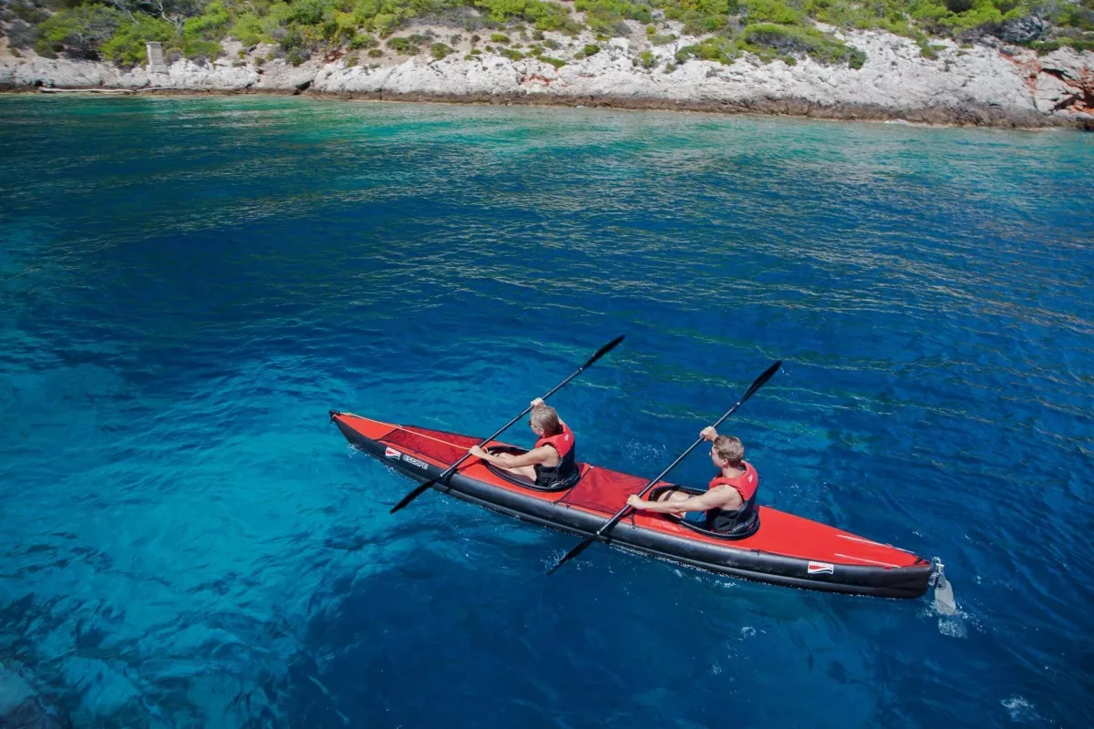 Freizeit und Abenteuer. Stabil, schnell und schnittig wie ein Hartschalenboot, dazu kippstabiler und leichter zu transportieren; ein Tourenkajak für Flüsse und Seen, professionell ausgeführt auch für mehrtägige Touren an der Meeresküste: Das alles ist das aufblasbare Schlauchkajak ESCAPE 2 in einem – nur eines nicht: für eine Person allein ideal. Das Sea-Kajak ist wie geschaffen für die Freiheit zu zweit! ESCAPE 2 – SPORTLICHKEIT FÜR ZWEI