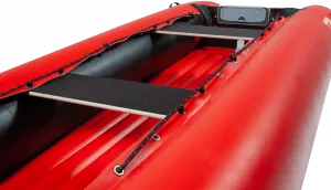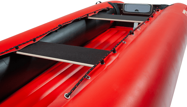 Die schlanke Bauweise mit breiten Seitenschläuchen formt herausragende Qualitäten: Beeindruckende Laufeigenschaften selbst bei geringer Motorleistung; sehr hohe Steifigkeit; 120 cm Gesamtbreite für gute Kippstabilität; die Innenbreite von 50 cm gibt bequemen Halt für Insassen und Ausrüstung.