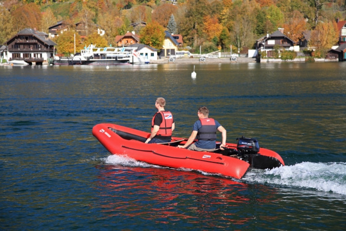 6 Personen samt Badezeug, Kühltasche oder Campingausrüstung/Zelt kommen spielend unter im Motorschlauchboot der Extraklasse. Seine 1,7 Meter Breite machen es besonders kippstabil und familientauglich und bei der Länge von 4,50 Metern kommt auch der Spaß nicht zu kurz: Auf Motorboottouren, bei denen man mit über 40 km/h übers Wasser flitzt, beim Rudern am See oder beim Fischen. Auf Flüssen und Küsten macht das aufblasbare Motorboot ebenfalls gute Strecke und Figur!