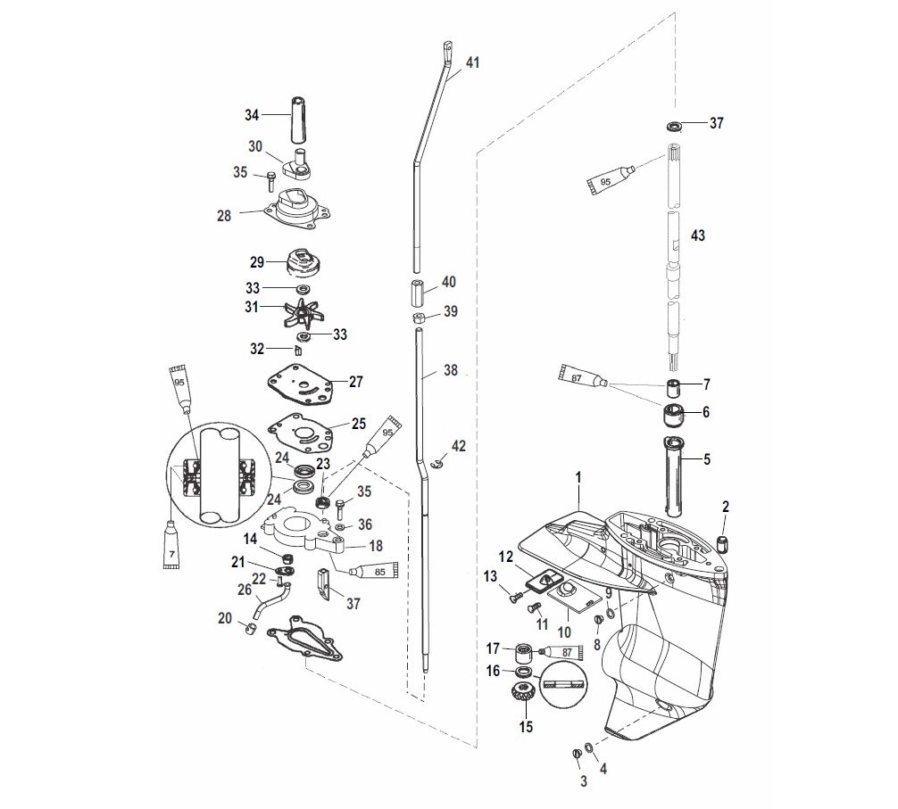 Mercury Mariner 13,5PS 15PS Ersatzteilliste 4Takt Getriebe 2.00:1 (Kein Bigfoot) Propellerwelle Schaft Ersatzteile F13,5 F15 Ersatzteileliste