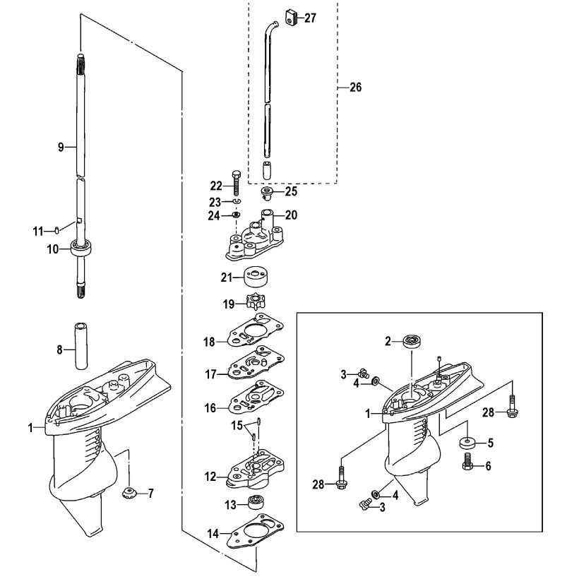 Pos.20 Wasserpumpenghäuse HOUSING ASSY Mercury Mariner 2,5PS 3,5PS 4Takt Wasserpumpe Getriebegehäuse Ersatzteile Aussenborder Außenborder