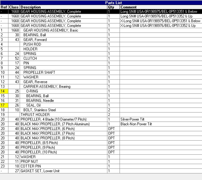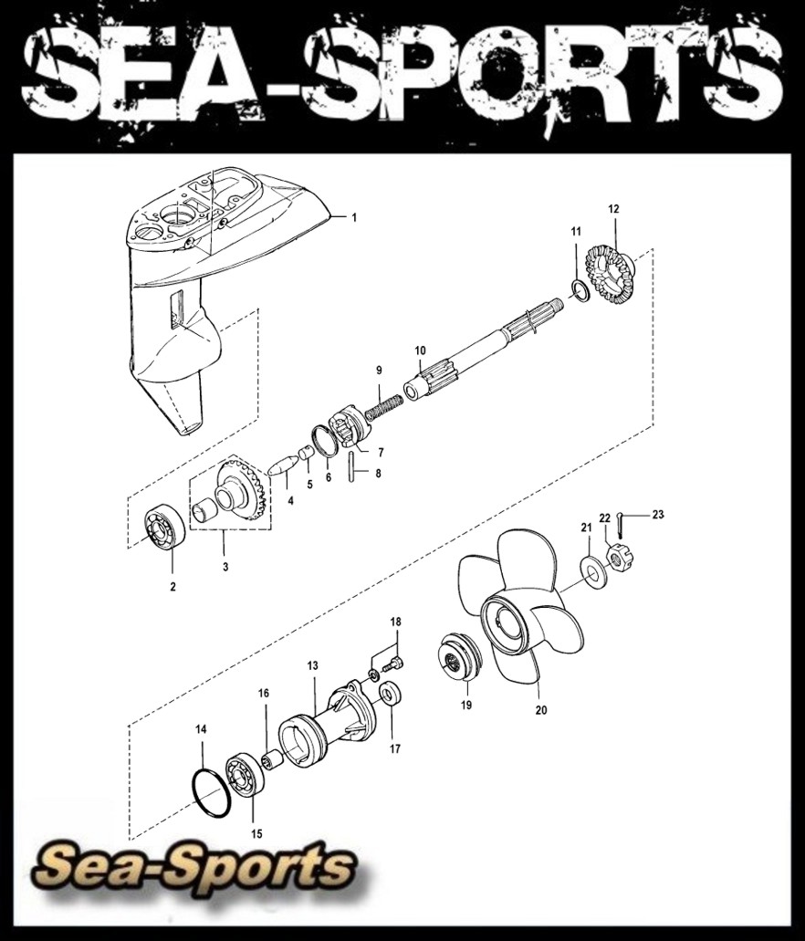 Mercury, Mariner 8PS 4Takt, Getriebegehäuse, Propellerschaft, Ersatzteile ab Seriennr.: 0R042475 und größer